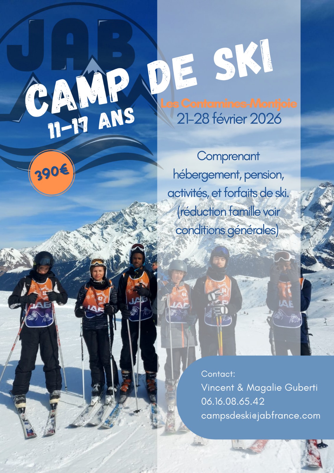 Du débutant au skieur confirmé, vous êtes les bienvenus pour ce nouveau camp JAB France.